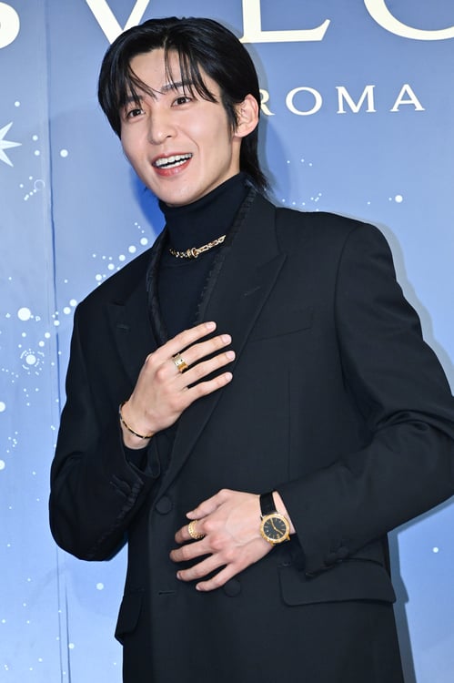目黒蓮(Snow Man)がブルガリのアンバサダーに就任。本日11月22日にグランドオープンを迎えた東京・ブルガリ 表参道での就任記者発表会に出席した。