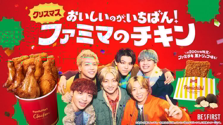 BE:FIRSTが出演するファミリーマートの新テレビCM「ファミマ×BE:FIRST クリスマスチキン」編の放送が明日12月9日にスタートする。