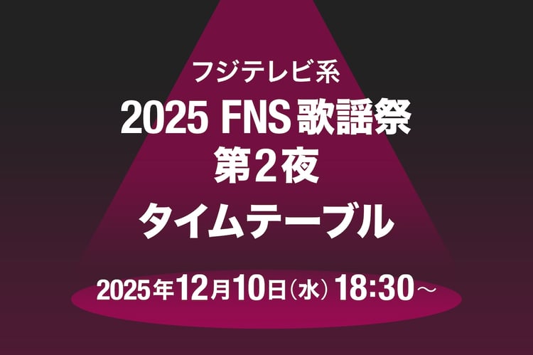 本日12月10日18:30からフジテレビ系で放送の音楽特番「2025 FNS歌謡祭」第2夜のタイムテーブルが発表された。