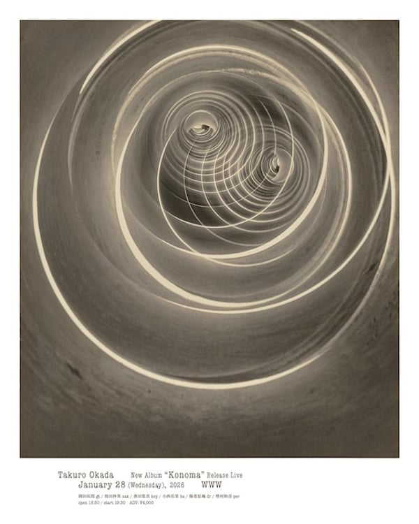 11月に配信とアナログでリリースされた「Konoma」は、「日本人の音楽家として、アフリカ系アメリカ人の音楽を単に借用することなくどう敬意を払えるのか?」という岡田の探究心により制作された作品。ワンマンライブには、岡田に加え、池田抄英(Sax)、香田悠真(Key)、小西佑果(B)、海老原颯(Dr)、増村和彦(Perc)が集結する。フライヤーデザインは鈴木聖が手がけた。チケットはイープラスで販売中。