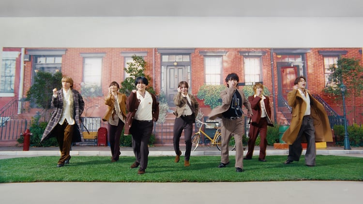 撮影を振り返ってのインタビューでは“馬ダンス”のポーズについて、山田涼介が「馬ってヒヒーンってやるじゃないですか。前にいく振りがあって、ちょっと首を上げて角度つけると、かわいらしくできるんですけど、有岡(大貴)さんのがずっと猫になってしまっていて」と指摘し、有岡が「どうしても猫に見えてしまうのが、ちょっと悩みでして」と返す場面も。また昨年の有馬記念はメンバー同士でレースを視聴し、予想して盛り上がっていたそう。薮宏太は見事予想を的中させたとのことで、髙木雄也は「今年は一緒に行って、便乗したいと思います」と期待を込めた。