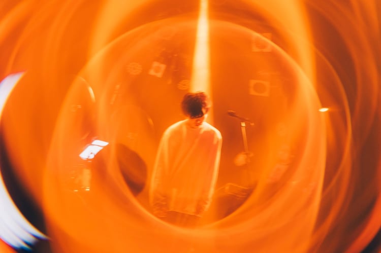 Meg Bonusは野本慶によるソロプロジェクト。全楽曲の作詞作曲、プロデュースまでを野本自身が手がけており、前衛的なトラックと普遍的かつポップなメロディで耳の早いリスナーから注目を浴びる20歳の新進気鋭のアーティストだ。SEのベース音がうねる中、バンドメンバーの高橋佳輝(B)、小金丸慧(G)、榎本響(Key)、窪田大志(Dr)、向啓介(Manipulator)に続いて野本が登場。そしてハイトーンボイスやピアノの旋律が美しいミドルチューン「春になれ」を皮切りに、ほとんど音が途切れることのない怒涛のワンマンショーが開幕した。