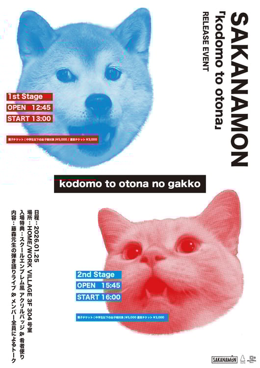 SAKANAMONの完全生産限定ミニアルバム「kodomo to otona」のリリース記念イベントが1月25日に東京・HOME/WORK VILLAGEにて2部制で開催される。
