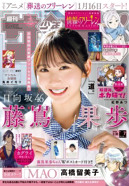 日向坂46の藤嶌果歩が本日1月14日発売のマンガ雑誌「週刊少年サンデー」2026年7号の表紙を飾っている。