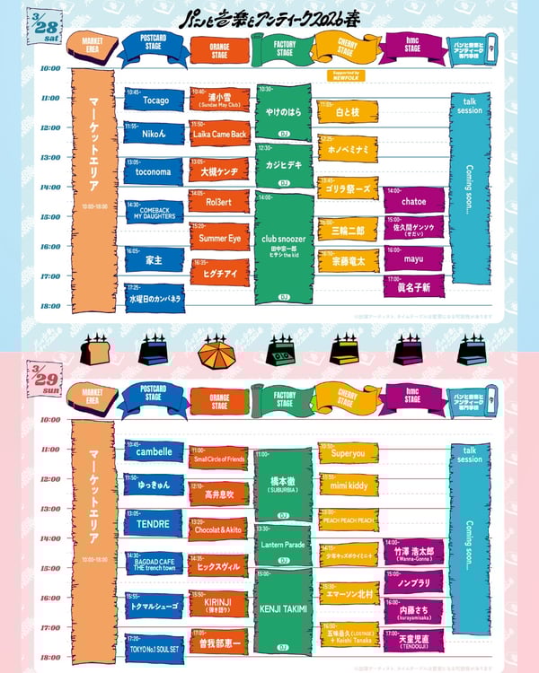3月28、29日に東京・東京オーヴァル京王閣で開催される都市型フェスティバル「パンと音楽とアンティーク2026春」のタイムテーブルが発表された。