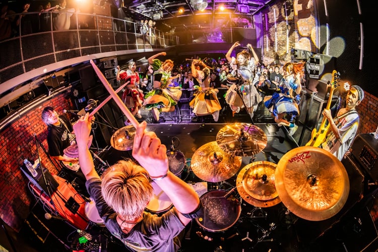 さらにBACK-ONは、4月1日に配信リリースする“アニソン縛り”のカバーEP「ANIMANIA」から「Guess Who Is Back」を演奏。豆柴楽曲の多くを手がけるKENJI03が「BACK-ONと豆柴の大群はもはやファミリーだと思ってます!」と宣言すると、会場からは温かい拍手と歓声が上がる。そして彼らは特撮ドラマ「仮面ライダーガッチャード」の主題歌「CHEMY×STORY」、2006年発表の1stシングル曲「Chain」を終盤に連投し、熱気あふれるアグレッシブなステージを繰り広げた。