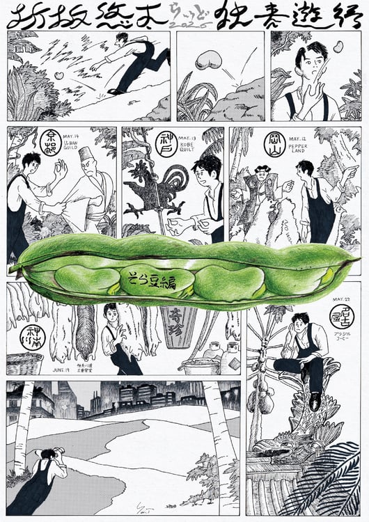 昨年9月から弾き語りツアー「折坂悠太 独奏遊行 らいど 2025」を行い、今年2月に沖縄で追加公演を実施した折坂。「そら豆編」で彼は活動初期に深く関わったゆかりの地への再訪をテーマに、初日5月12日の岡山・PEPPERLANDから最終日6月19日の神奈川・神奈川県立音楽堂まで全5カ所を回る。ツアータイトルには、今後も“まめ”に訪れたいという意味が込められている。