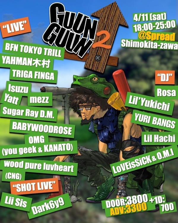 また前回に続いてOMGからyou geek & KANATO、Dark6y9、Lil Sisも出演。トラップに加え、アフロビーツ、レゲトン、ダンスホールといったグローバルの流行をミックスし、現行の日本語ラップシーンとの接続を模索するラインナップとなっている。チケットの予約は特設フォームで受付中。